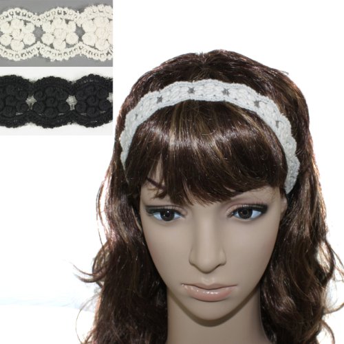 Princess Floral Lace, Look elegant with this vintage style floral lace headband. This classic headband style is great for holding your hair back as you do thing such as reading, eating, and taking walks on a windy day. This headband can be worn for both formal and casual occasion. The headband dimension is 9.5 inches long and 1.5 inches wide and is made of lace. It comes with 2 headbands, one in white lace and the other with black lace.