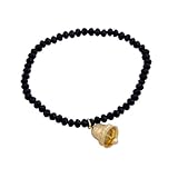 Amazon.com Collection S1A1LREXW1, Be the "bell" of the ball when donning the 18k Yellow Gold Plated Sterling Silver Glass Bead with Bell Charm Bracelet. Black glass beads are strung to create this 7.25-inch long bracelet. The beads are accented with a gold bell charm that contains a hammered finish and elegant detailing. The contrast created between the beads and the gold bell emphasizes the shine of this playful piece. ...
