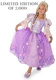 , Rapunzel's coronation into the Princess Court is one of real fashion! Live the magic with this limited edition gown featuring a pleated collar and embroidered bodice adorned with sequins and trimmed with gold metallic lace. The full skirt glitters with flowers, pearls and a ribboned hem. * Authentic Disney Princess Costume * Bodice features lace, sequins, embroidery and a pink lace-up ribbon * Lavender puff sleeves with pink and gold ribbons, rose appliqués, and lavish satin sleeve layers * Laced purple pleated collar * Sparkling organza overskirt * Butterfly glitter designs, pearls, and flower appliqués decorate the skirt * Ribboned hem * Two underskirt layers * Nylon/polyester * Imported * Coordinates with Deluxe Tangled Rapunzel Shoes and Tiara, each sold separately * Limited Edition of 2000 ...