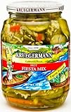 Kruegermann , Kruegermann Fiesta Mix is a salad made of fresh cucumbers, carrots, onion, red bell peppers, and cabbage. The cucumbers used for Kruegermann Hot Fiesta Mix are grown on a family owned farm in Stockton, California. The cabbage comes from a local farmer in the Edna Valley near San Luis Obispo, California, who grows it from Kruegermann's special variety of seeds. The Fiesta Mix is pasteurized without using preservatives. The vegetables are sliced or shredded and packed in a mild sweet and sour brine. This salad can be eaten by itself or served along with a meal. This hot version has a little tingle of chili. ...